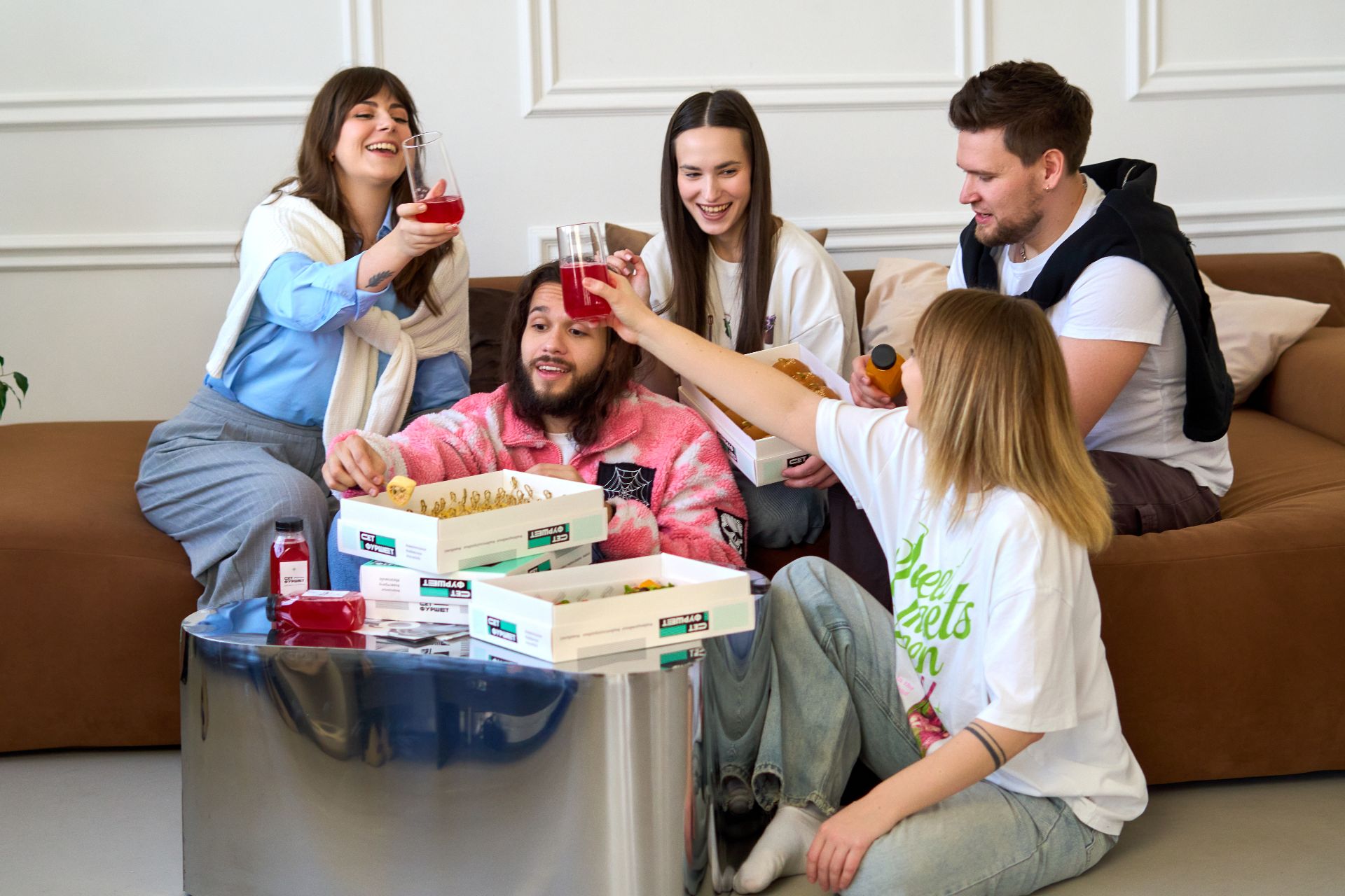 Если не хочется никуда ехать и угощать своего мужчину — есть «Сет-Фуршет». Кейтеринг в коробке: готовые фуршетные наборы или сеты, которые можно собрать под себя и свой бюджет. Доставка по Москве, оформить заказ можно за 6 часов до важного события. Удобно, быстро и как раз на 23е февраля — просто открываете коробку и празднуете.
