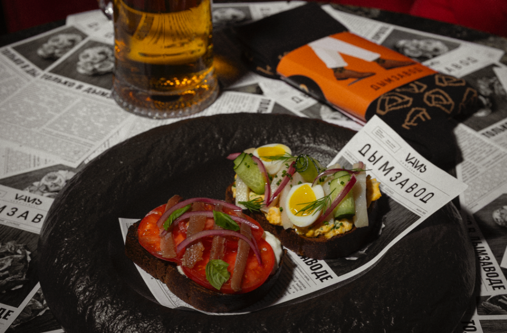 Если отмечать 23 февраля, то без сложных концепций и в проверенном месте. Например, в Дымзаводе с 17 по 23 февраля сделали настоящий мужской сет за 1500₽: тост с сельдью, тост с анчоусами и пиво. Плюс при заказе дарят эксклюзивный мерч — фирменные носки — как неизменная традиция 23 февраля. Работает во всех локациях сети. Ну, за носками! А если что — всегда передарить можно.