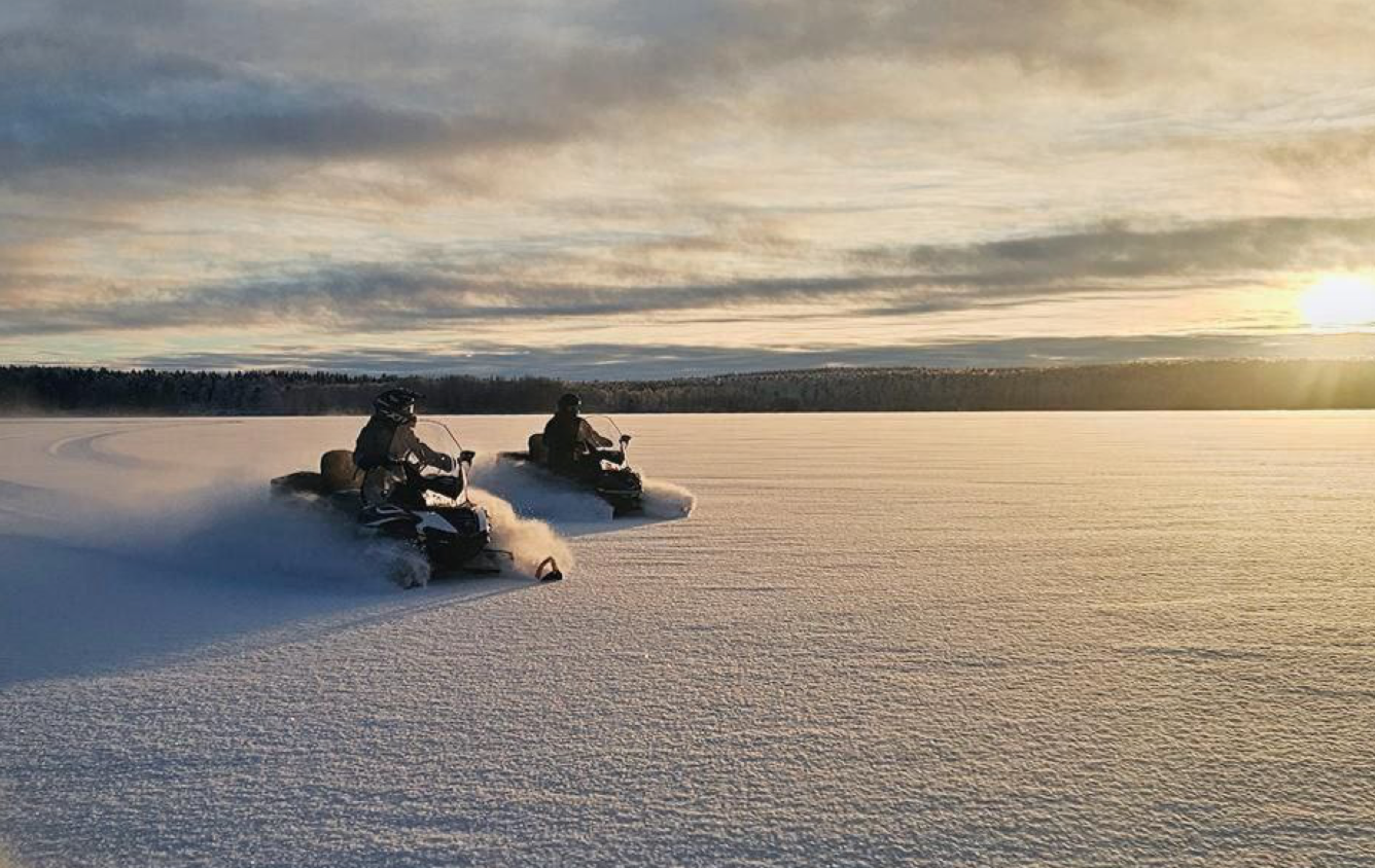 Снегоходы по озеру, прогулки по лесу, ужин у камина и северное небо над головой — сценарий максимально романтичный и немного кинематографичный. В пакет для влюблённых уже включили бокалы вина к ужину или десерту и поздний выезд, чтобы никуда не спешить.