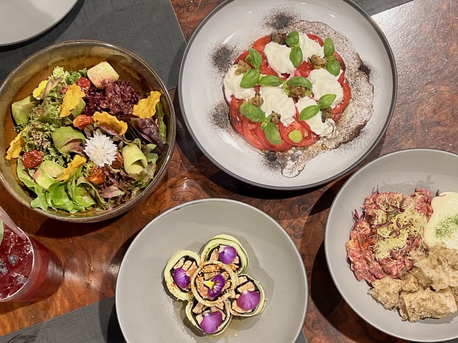 Карпаччо из помидоров (900₽), микс салат (900₽), лосось (1700₽), тартар из говядины (1300₽)