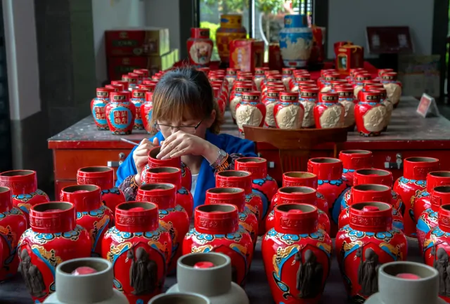 Сейчас уже не закапывают вино, но традиции чтят и поэтому хранят бутылки в погребе. Иногда бутылки делают и расписывают сами, но есть и целая индустрия китайских художниц, которые делают красивые свадебные бутылки для розлива такого вина.