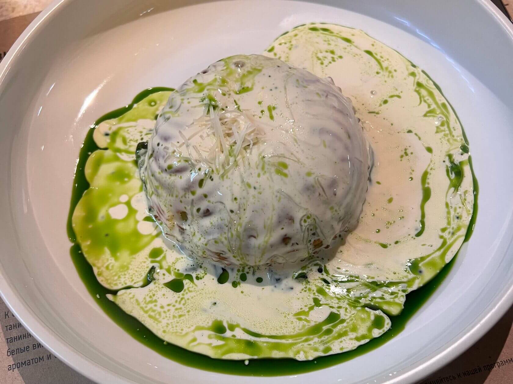 Кто из нас не ел в детстве бабушкин капустный пирог? В Valdo тихонько подталкивают нас к ностальгии и готовят волшебный пирог с капустой (490₽) на французский манер с эффектной подачей из соуса. Ненароком, да пробегут в памяти несколько кадров из счастливого детства.